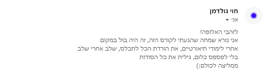 בסדנה ממוקדת, ראשונה מסוגה לבונות אתרים שלא רוצות עוד "עוד קורס",אלא כלים אמיתיים לבנייה מקצועית –עם שלבים ברורים, חשיבה פרקטית, ויישום אמיתי בשטח.